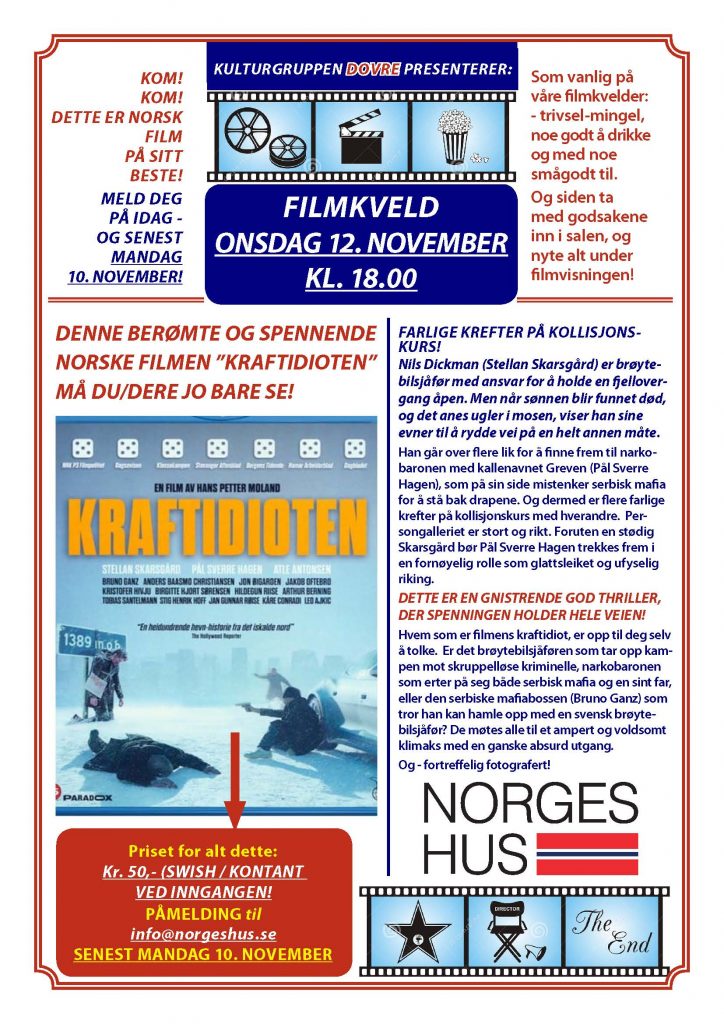 Kulturaktiviteter Filmkveld 12. november 2025-11-06 Louise Larsson louise@norgeshus.se Inläggsnavigering Nyhetsbrev #6 – 2025