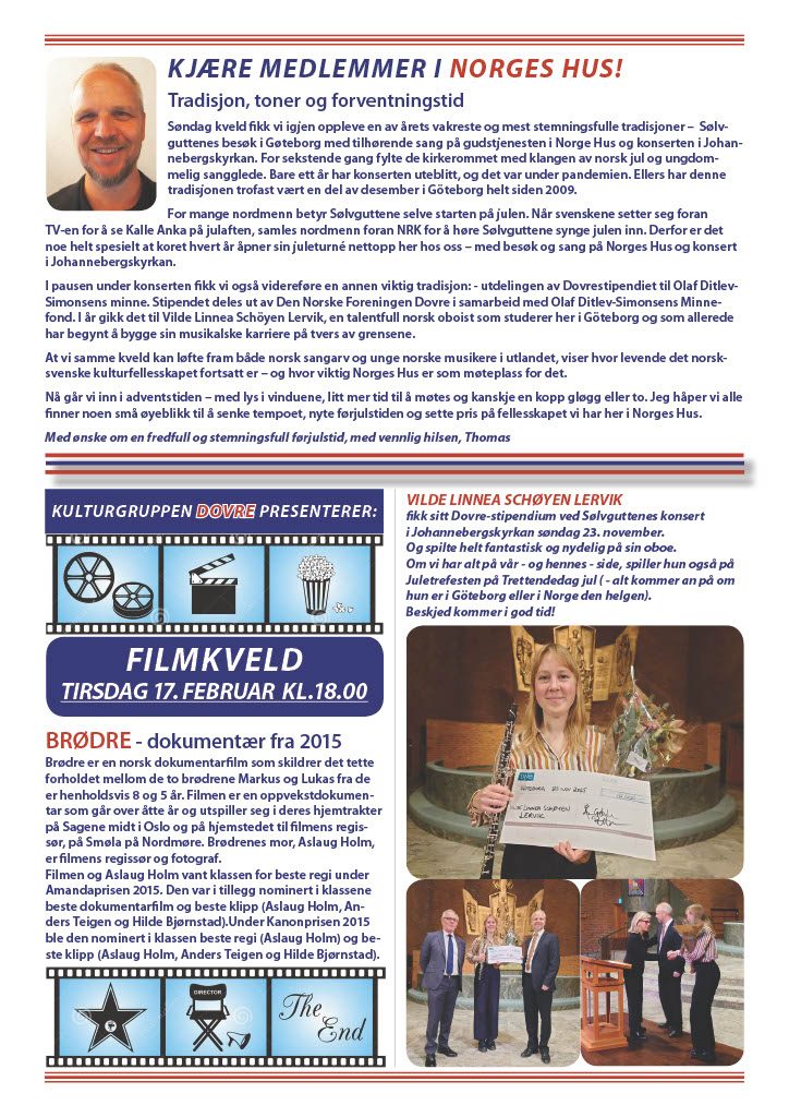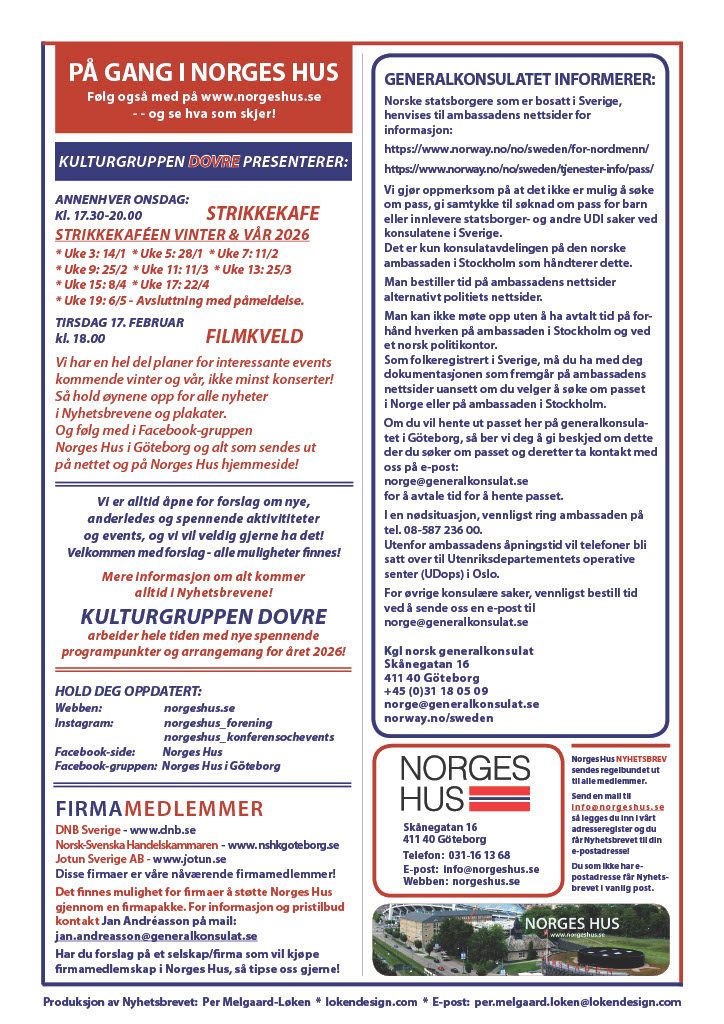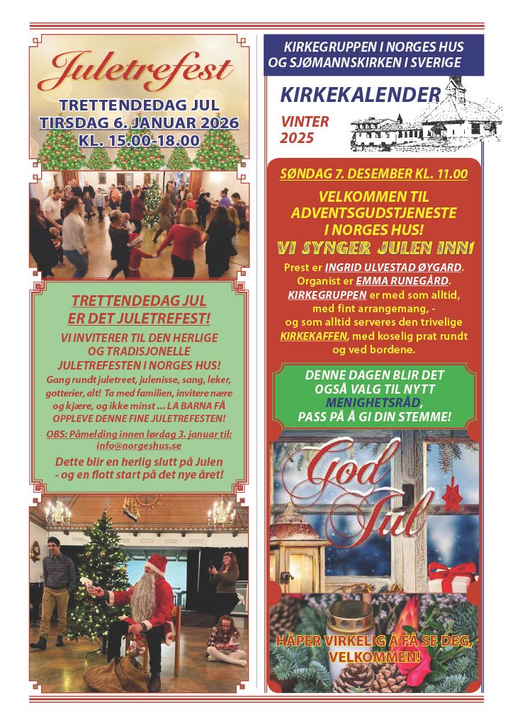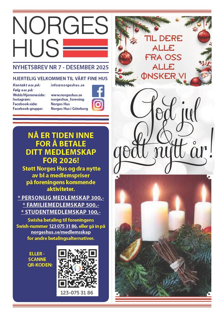 Nyhetsbrev Nyhetsbrev nr. 7 – Desember 2025 2025-12-02 Louise Larsson louise@norgeshus.se Inläggsnavigering 2. Advents-Gudstjeneste 7. desember kl. 11.00
